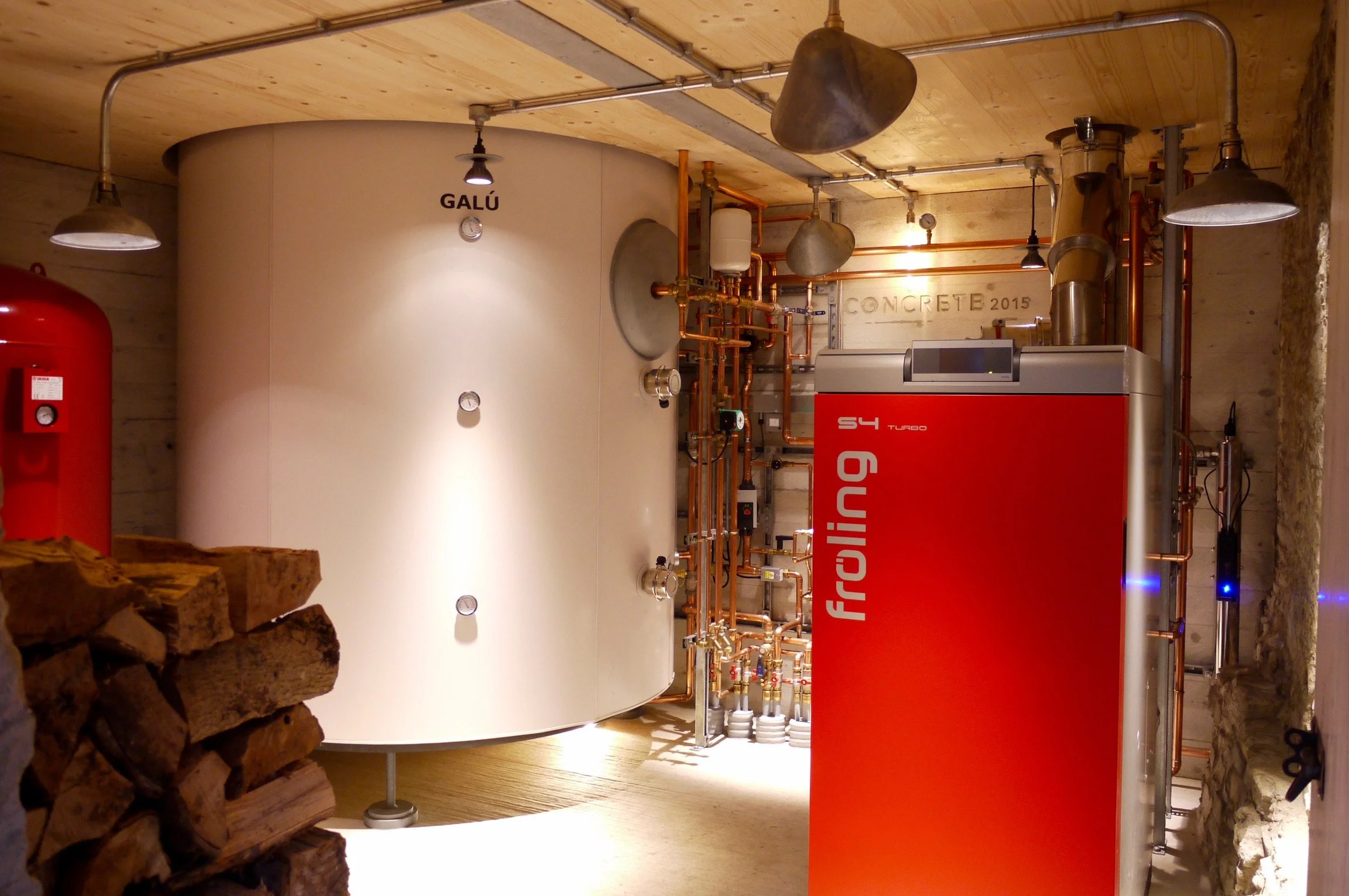 The renewable energy generated at the farm is fed into an 8,000 litre water tank which then supplies domestic hot water as well as feeding radiators in Manor Cottage and the farmhouse. Our biomass boiler tops up the tank when demand exceeds the energy supplied by wind and solar - we use logs harvested during coppicing work on the hedgerows which are brought in, dried then used for the boiler as well as for the woodburners in the holiday cottages.